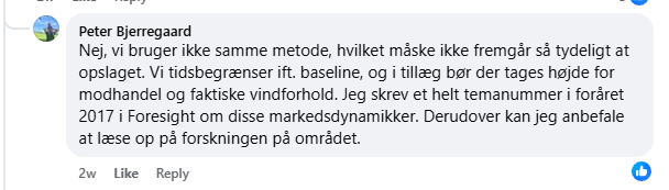I en Facebookdebat benægter Peter Bjerregaard, CIP, først, at man har brugt samme metode. Læg mærke til “bør der tages højde for”. Der står ikke, at CIP har taget højde for.